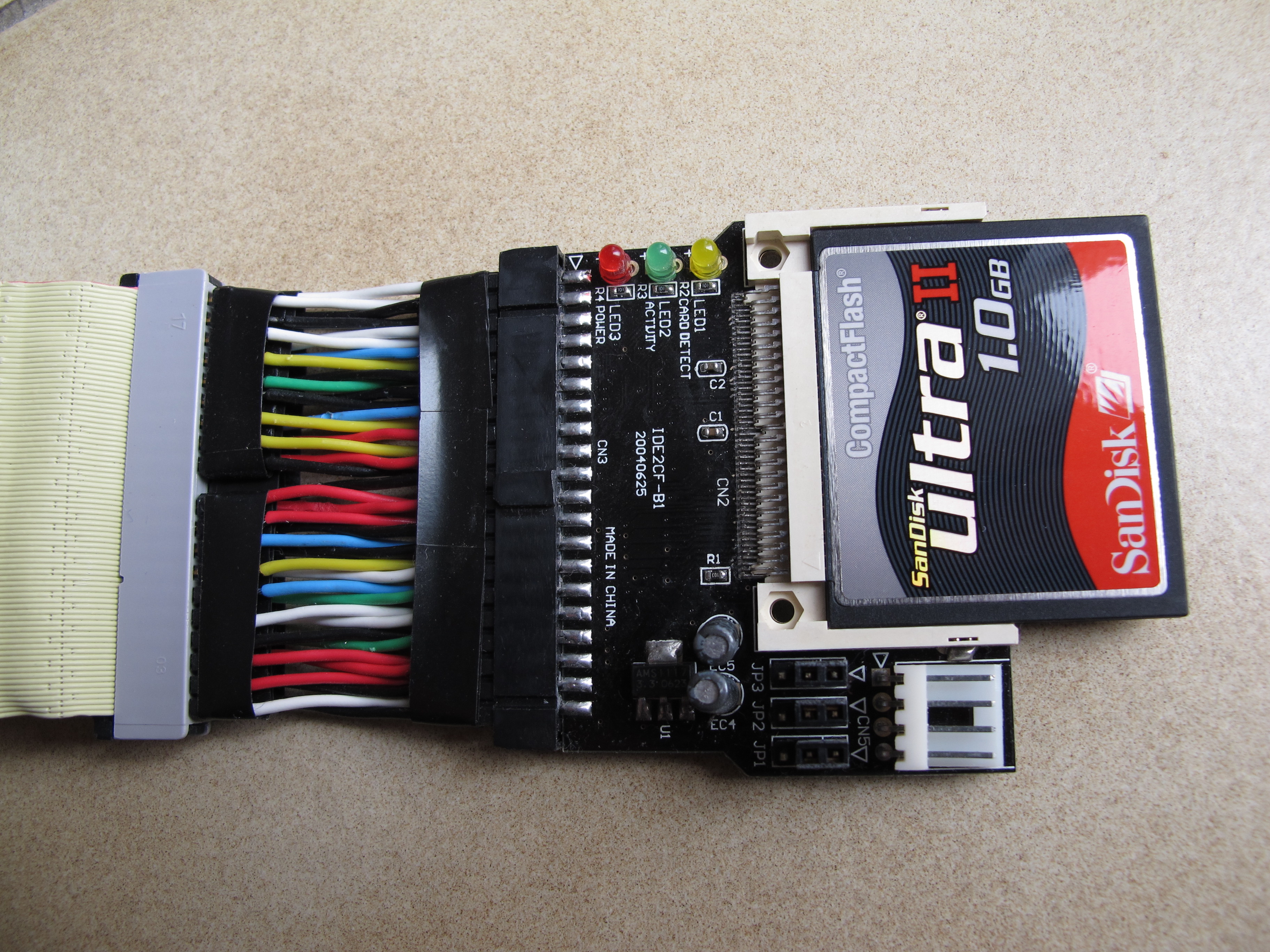 01/2007 : pour réduire le bruit de l'ensemble, j'ai commencé par remplacer le disque dur par une carte compact flash à l'aide d'un adaptateur CF <> IDE acheté sur un site d'enchère en ligne. C'est introuvable en France.