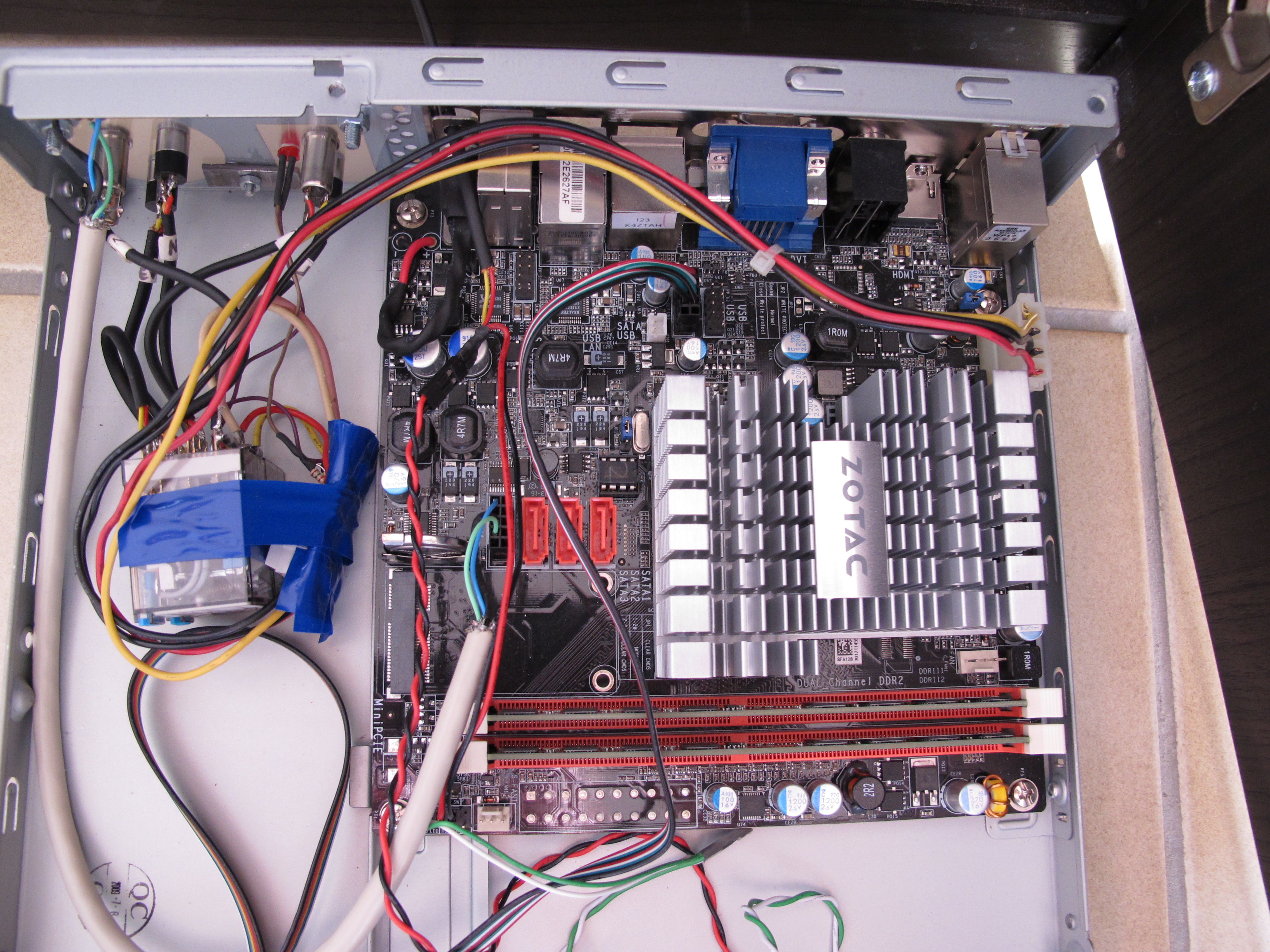 J'ai installé l'ensemble dans un boitier Compucase 8K07. La carte mère est équipé d'une alimentation externe de 120 W ayant la forme d'un bloc secteur de PC portable fanless.
