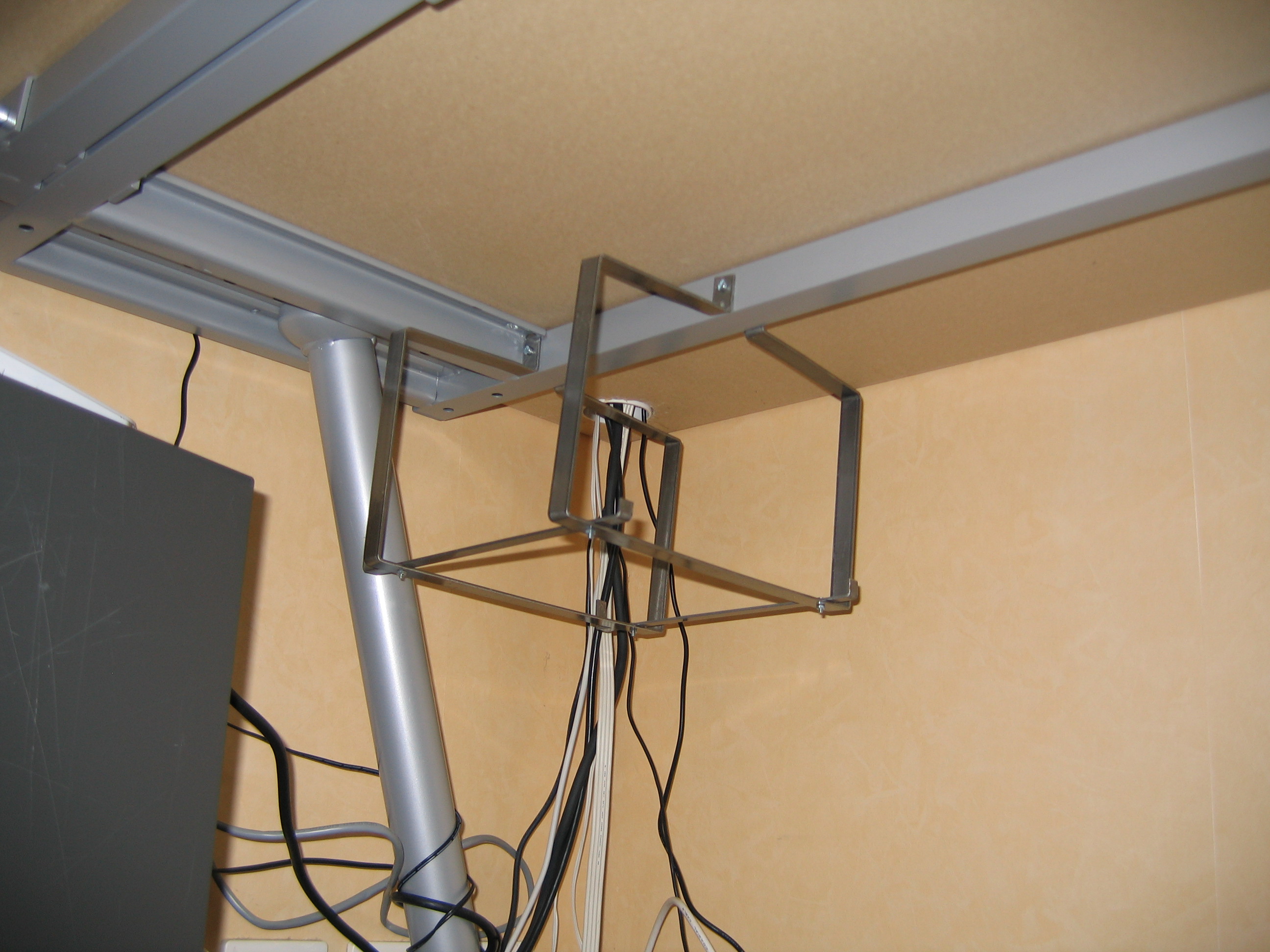 Pour rendre l'ensemble plus discret et améliorer mon WAF, j'ai fabriqué un support métallique aux dimensions du boitier pour le suspendre sous le bureau.