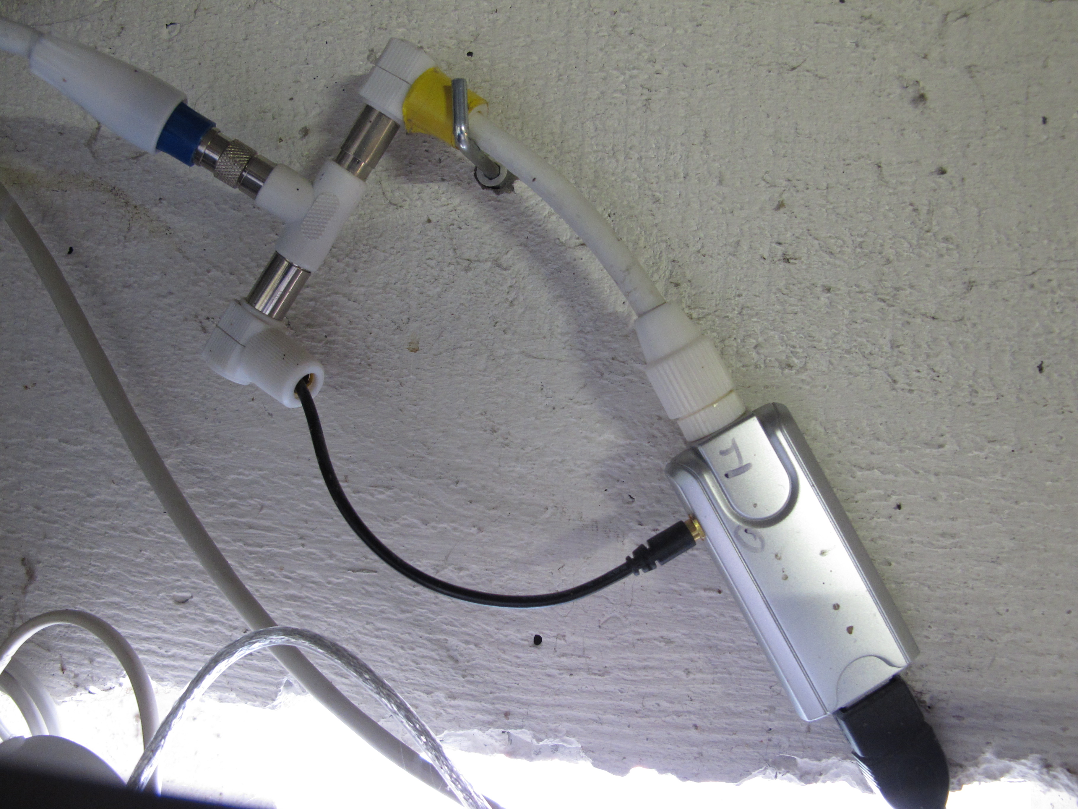 09/2017 : à chaque fois que j'interviens autour du serveur, si je touche aux câble de l'antenne, la réception se dégrade facilement. Les connecteurs en plastique sont fragiles et trop sensibles aux mouvements. Pour régler l'ensemble, il faut manipuler les connecteurs et câbles pour trouver la position qui offre le meilleur contact. De plus, pour couronner le tout, lorsque j'approche la main du récepteur, la réception varie également…